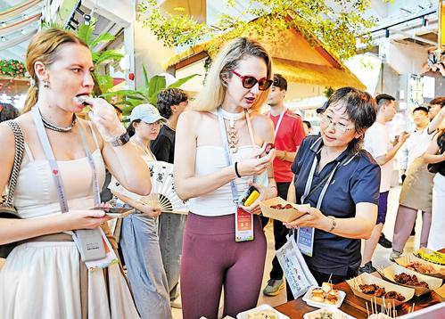 9月14日,外国游客在石家庄织音1953品尝当地特色美食。