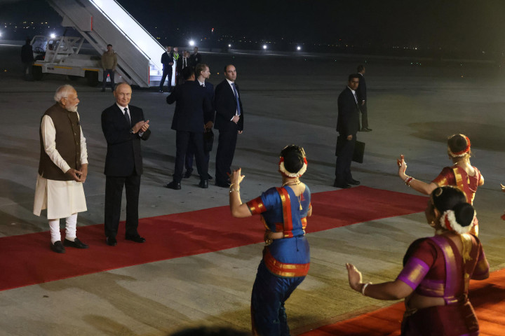 普京于当地时间12月4日下午6点35分左右抵达印度德里,印度总理莫迪亲自在帕拉姆机场迎接了他,两人热情拥抱。克里姆林宫发言人佩斯科夫称,莫迪到机场迎接普京是印度方面突然做出的决定,俄方事先并不知情。在机场,还有印度舞者表演了传统舞蹈欢迎普京。